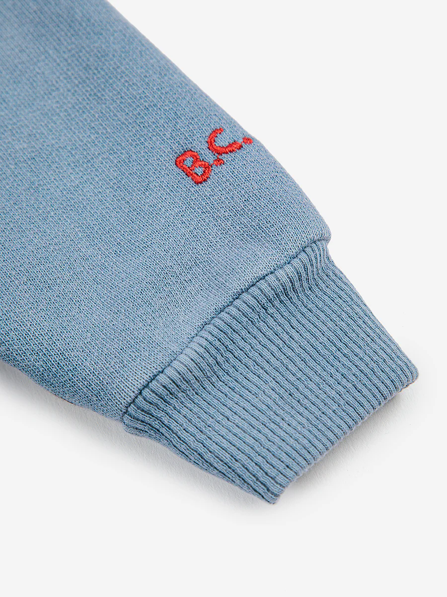 67% organic cotton 33% recycled cotton blue hooded sweatshirt. Designed with long sleeves, dropped shoulder, front zip fastening, ribbed cuffs, embroidery and ribbed bottom. It has a loose fit. Made in SpainSelect Size
